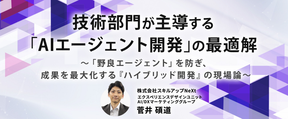 2/25(水) 16:00- 技術部門が主導する「AIエージェント開発」の最適解 ~「野良エージェント」を防ぎ、成果を最大化する『ハイブリッド開発』の現場論~